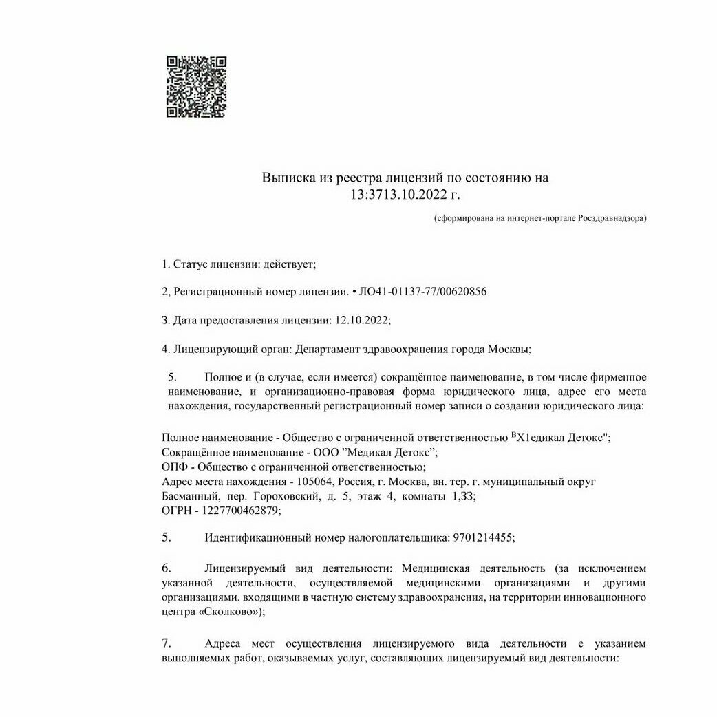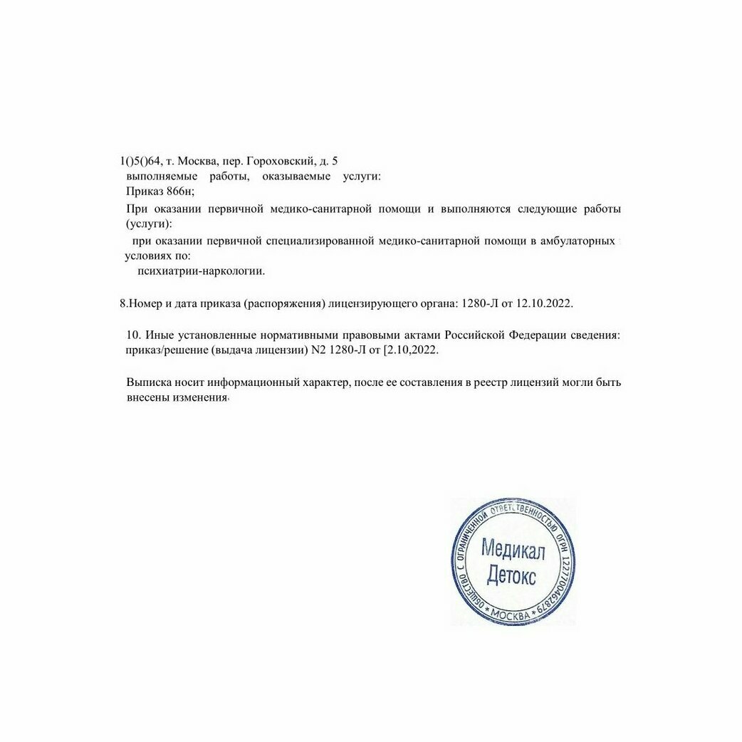 - ООО "Медикал Детокс", пер. Гороховский д.5, г. Москва
